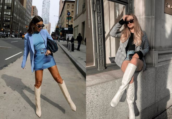 Белые казаки – новый тренд и не каждая девушка знает “С чем носить белые сапоги казаки”. Отличным вариантом станет мешковатый плащ, еще можно взять джинсовую куртку с мехом или без, кожанку, парку, бомбер. В холодное время года уместна укороченная шуба или дублёнка.